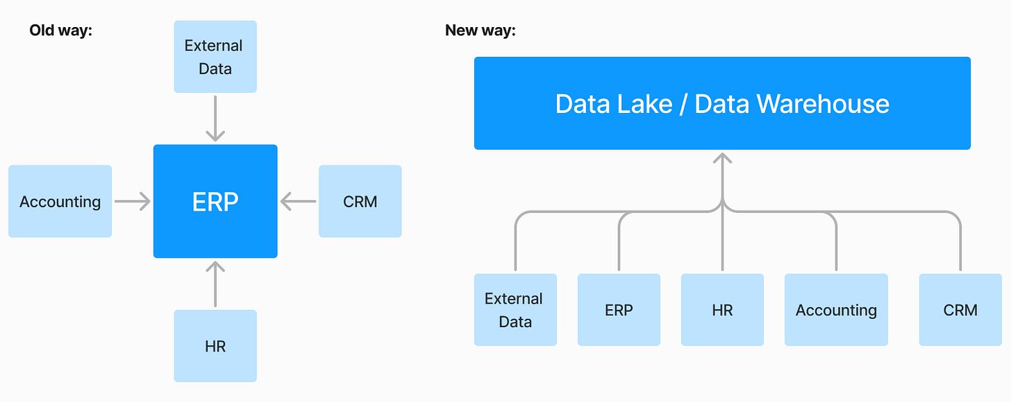 Vendors of large software companies that create ERPs or CRMs sell the idea that their product is a unified platform for your data across your entire business. It will be the only software you need to run your business, and once it is implemented everything will run a lot smoother.